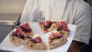 Nov62024#RoadToSmartBakingLa scelta funzionale e di design del forno serieS Icon Quando, sei anni fa, Danila Ercole ha deciso di aprire Cavò a Senigallia, sapeva che sarebbe stata un’avventura entusiasmante. L’idea di combinare due passioni — la sua per la cucina e la pizza, e quella del suo compagno, Max Frezza, per la mixology — si traduceva in un progetto unico per una città ancora nuova a certi format. Appena entrati, la prima cosa che notiamo è l’atmosfera decisa. Lo stile è coerente, ferro e legno per degli ambienti da industrial design che incontrano in cucina il forno serieS in versione Icon che si sposa alla perfezione con l’arredamento circostante, diventando un protagonista essenziale. Danila racconta che la scelta del forno è stata un passo fondamentale, quasi predestinato. “Vengo da una famiglia che ha sempre lavorato con la pizza. Mio padre mi parlava già quarant’anni fa di Moretti Forni come sinonimo di qualità e affidabilità. Quindi, quando sono entrata nel locale e ho visto un Moretti Forni un po’ datato nella cucina, ho sentito che questo era il posto giusto. Da lì ho deciso di cambiarlo investendo sempre in un forno Moretti ma di nuova generazione, il serieS a due camere, entrambe Fastbake.” Una scelta mirata sia all’innovazione che al design, con una tecnologia al servizio della qualità. Perché la scelta di serieS con Fastbake? “Per la sua capacità di gestire alte temperature senza asciugare eccessivamente l’impasto; venendo da 15 anni di esperienza con il forno a legna, era fondamentale non perdere quella caratteristica di croccantezza all’esterno e morbidezza interna.” Inoltre, Danila prosegue affermando: “Avevo bisogno di un forno che mi permettesse di gestire cinque tipi di impasti diversi, con temperature oltre i 350°C, senza perdere mai di potenza. E serieS lo fa alla perfezione. Ogni pizza esce sempre come la immagino: croccante fuori, morbida dentro, con quel tocco di napoletana che cercavo.” Come utilizzi il processo di Refining®? “Posso precuocere a ¾ e poi utilizzare il Refining® durante il servizio. Questo non solo migliora la qualità del prodotto, ma mi dà anche la flessibilità di gestire meglio le serate più affollate.” Il Refining®, infatti, semplifica tantissimo sia la gestione che i flussi di lavoro di Danila e le garantisce la possibilità di personalizzare la cottura, anche con ricette più complesse. Questo cambiamento nel suo modo di lavorare, le ha permesso di aumentare la produttività e garantire sempre la stessa qualità, consentendo a Cavò di ampliare l’offerta con impasti classici, grani antichi come il farro monococco, cereali e varianti più moderne con ingredienti come il nero di seppia o la curcuma. Tra le innovazioni preferite di Danila, c’è l’accensione a distanza (tramite SmartBaking App): “Per esempio questa mattina l’ho acceso da casa e quando sono arrivata qua, era pronto, quindi anche un grandissimo lavoro in meno.” La tecnologia avanzata del forno non solo le garantisce una qualità costante, ma le permette anche di non dipendere da personale esperto. “Uno dei vantaggi migliori in assoluto è che comunque oggi posso utilizzare un forno senza avere una persona specializzata; quindi, anche quando siamo nel boom del lavoro e abbiamo bisogno di una persona in più, ecco che viene lo chef dalla cucina e sta tranquillamente al forno anche se non è il suo lavoro principale. Inoltre, le tecnologie come il Delta-Power™, che bilanciano il calore tra la parte anteriore e posteriore del forno, e l’Eco-Standby™, che permette di risparmiare energia durante le pause, rendono tutto più semplice. E la pizza esce sempre come la voglio io.” Ogni riga del menù è un racconto del territorio: dal topping al coniglio in porchetta a quello con la trippa, fino alla “6 spicchi”, la pizza che favorisce l’esperienza condivisa tra i commensali. Danila e il suo team seguono la stagionalità, creando una carta che cambia quattro volte l’anno, con prodotti freschi e locali. Ma non è solo la creatività a fare la differenza: l’organizzazione precisa e la tecnologia avanzata hanno permesso di mantenere un livello costante di qualità, nonostante la crescita del locale da venti a cento posti con il dehor sempre aperto, anche d’inverno. Cavò ha ottenuto riconoscimenti prestigiosi come l’inserimento in 50 Top Pizza e quest’anno due spicchi Gambero Rosso con una votazione altissima. In una città come Senigallia, già abituata a grandi eccellenze gastronomiche, anche un’idea di pizzeria differente ha avuto successo, dando quindi ragione a Danila e alla sua squadra. E tutto è iniziato con quella scelta, quel forno capace di fare la differenza. Leggi ancheSilvia Ciccolini conquista Fabriano con la sua pizza piena di personalità10 Settembre 2025Parco Manzoni, a Cesenatico, sceglie serieS per dare forma alla sua filosofia gastronomica9 Agosto 2025Granum ad Alba Adriatica: la vera pizza contemporanea sfornata con Neapolis4 Luglio 2025SEGRETA, come serieS ha aiutato a conquistare Montréal con la vera pizza al taglio13 Giugno 2025Darsena del Sale: benessere e cucina si incontrano a Cervia5 Giugno 2025Da Piedimonte Matese (CE) agli USA: la sfida elettrica di Jonathan Atzeni30 Maggio 2025