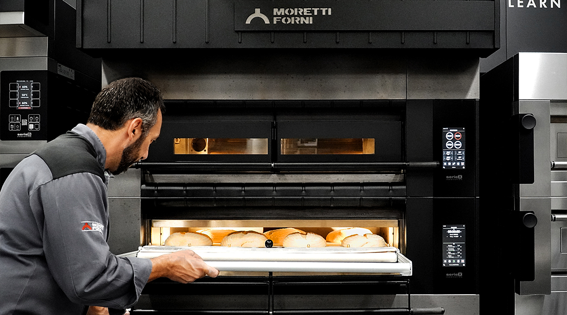 Ago42025APPROFONDIMENTIUno dei fattori più importante nella ristorazione è l’ottimizzazione dei tempi. Ma se ci fosse un forno che aiutasse a risparmiare tempo, energia e fatica… autonomamente? Ottimizzare le risorse e la qualità in produzione è sempre più una necessità contemporanea. In questo scenario, utilizzare una tecnologia capace di assolvere a questo compito, rappresenta una svolta concreta e misurabile. serieX è il forno pensato per cambiare radicalmente l’esperienza di lavoro. Autonomia intelligente: la cottura si adatta a te serieX è dotato della tecnologia AnyChef™: un sistema avanzato di algoritmi che imposta in autonomia il ciclo di cottura ideale. Il forno guida l’operatore suggerendo sul display grafico la posizione migliore dove infornare ogni prodotto. Che si tratti di pizza, pane, pasticceria o gastronomia, il risultato sarà omogeneo e replicabile. È una soluzione che abbatte la curva di apprendimento, rendendo accessibile la cottura perfetta anche agli operatori meno esperti. Facilità e ottimizzazione del lavoro: avrai più tempo libero da investire Uno dei vantaggi più evidenti nell’utilizzo di serieX è il risparmio di tempo operativo. Grazie alle tecnologie Adaptive BakingTime™ e SmartDeck™, il forno è in grado di monitorare e autoregolare in tempo reale la cottura in base alla quantità e alla tipologia dei prodotti infornati. L’intervento manuale non è più necessario: il forno gestisce tutto in autonomia e segnala con precisione il momento esatto per sfornare. A potenziare ulteriormente questa efficienza interviene la SmartBaking App, l’applicazione che consente di gestire il forno da remoto direttamente da smartphone. È possibile accendere il forno prima di arrivare in laboratorio, trovarlo già in temperatura al momento dell’avvio turno, impostare orari programmati di accensione e spegnimento, attivare la modalità Auto EcoStandby™ e monitorare i consumi. Inoltre, la presenza della valvola rilascio vapori automatica consente un controllo preciso dell’umidità residua, migliorando la qualità del risultato finale senza la necessità di intervento manuale. Tutto questo rende la gestione quotidiana più agile, reattiva e intelligente, migliorando l’organizzazione del lavoro. Risparmio energetico reale: sostenibilità che si misura serieX è progettato per essere il forno più sostenibile della sua categoria. Assicura una riduzione dei consumi fino al 45% rispetto ai sistemi tradizionali. Le tecnologie Auto EcoStandby™ e Auto PowerBooster™ permettono una gestione dinamica dell’energia, adattandosi ai carichi e alle pause operative valorizzando al massimo la qualità della cottura. È una scelta che coniuga efficienza produttiva e responsabilità ambientale. Versatilità per ogni ambiente e ogni professionista serieX è adatto a ristoranti, pizzerie, bakery, bistrot, catene di ristorazione e hotel. La sua modularità e la varietà di funzioni, dalla precottura al Refining®, lo rendono una soluzione completa per ogni tipo di prodotto e flusso di lavoro. Inoltre, se hai più location, è gestibile anche da remoto grazie alla piattaforma RemoteMaster Hub™, per un controllo centralizzato su più sedi o postazioni. Un design pensato per chi lavora, ogni giorno Il design di serieX non è solo una questione estetica, ma una scelta funzionale che migliora concretamente l’esperienza operativa. Ogni dettaglio è stato studiato per garantire massima fruibilità in qualsiasi condizione di lavoro. La maniglia spazzolata con finitura antisettica consente un’apertura rapida e sicura, totale o parziale, delle doppie porte in acciaio inox, contribuendo al risparmio energetico e minimizzando la dispersione di calore verso l’esterno. In questo, gioca un ruolo fondamentale anche il sistema CoolAround®: le superfici esterne del forno restano fredde al tatto, aumentando la sicurezza e il comfort dell’ambiente di lavoro, anche nelle cucine con più alto carico di lavoro. La visibilità all’interno del forno è ottimizzata grazie agli specchi in acciaio riflettente e a un doppio sistema di illuminazione LED, orientato e protetto, che valorizza il prodotto anche in fase di cottura. Il risultato è un’interazione intuitiva e confortevole, dove ogni elemento risponde a un’esigenza concreta del professionista. Leggi ancheIl calore top player: Moretti Forni nei grandi eventi sportivi internazionali10 Luglio 2025Chain Reaction – Pizzikotto x Moretti Forni a SIGEP 202517 Aprile 2025Chain Reaction – Pizzium x Moretti Forni a SIGEP 202513 Marzo 2025Chain Reaction – Rossopomodoro x Moretti Forni a SIGEP 202519 Febbraio 2025Chain Reaction – Alice Pizza x Moretti Forni a SIGEP 202510 Febbraio 2025La cottura statica in cucina – Gianluca Fusto13 Dicembre 2022