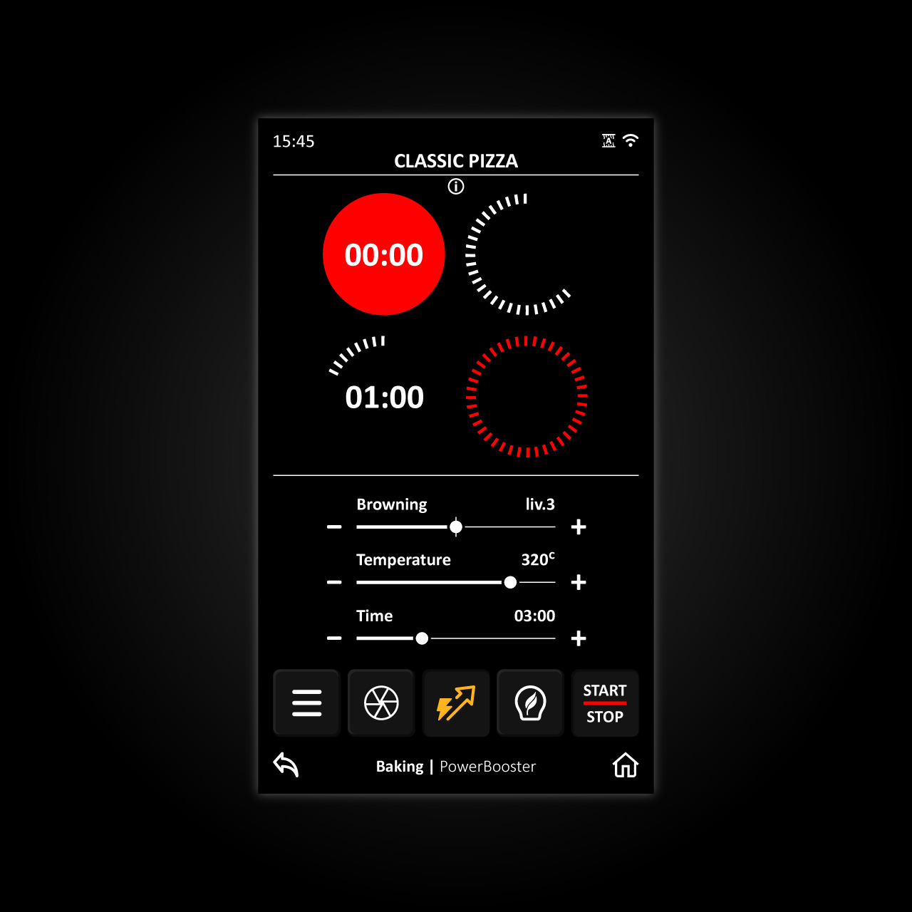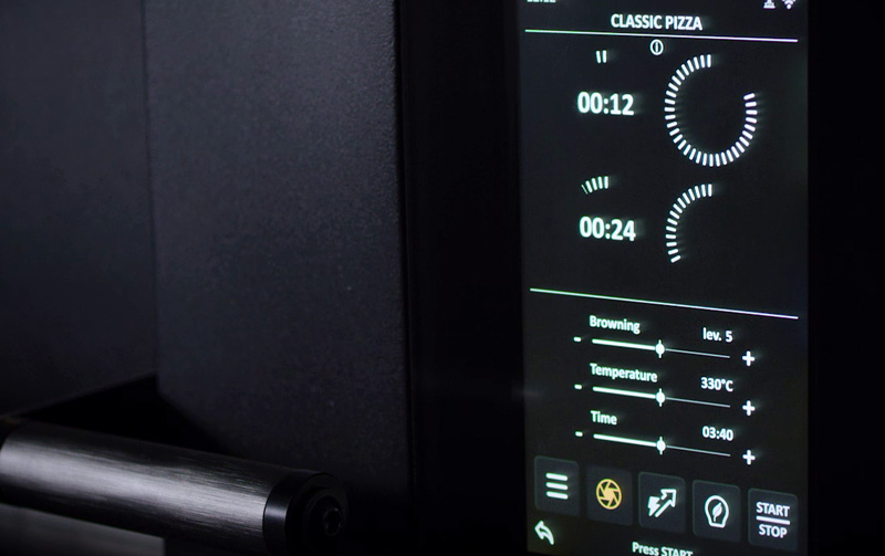 Manueller Backmodus für separates und unabhängiges Einstellen der Leistung und Temperatur von Ober- und Unterdeck. Perfekte Kalibrierung und Wärmeverteilung.