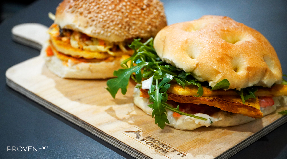 Ago132023RICETTEI buns vegani sono panini morbidi e perfetti per essere farciti con i tuoi ingredienti preferiti. In questa ricetta ti proponiamo due varianti irresistibili: classica da farcire con hamburger vegetariani o, in versione focaccina per uno spuntino delizioso. Con il forno Proven e le sue funzioni dedicate, questa ricetta sarà facile e veloce. Scopri come utilizzare la modalità lievitazione per assicurare il corretto sviluppo del pane e ottenere dei buns soffici e leggeri. Burger Buns vegani INGREDIENTI PER CIRCA 20 BUNS Impasto Farina W300-320 700 g Semola rimacinata di grano duro 300 g Acqua 540 g Malto 10 g Lievito di birra fresco 30 g Zucchero semolato 50 g Sale 20 g Olio EVO 50 g Latte di soia (o altro latte vegano) q.b. per spennellare Semi di sesamo o semi di papavero Calore: Proven, programma “Panini al latte” PROCEDIMENTO Impasto: In un’impastatrice unire tutti gli ingredienti tranne metà dell’olio. Impastare 9/10 minuti a bassa velocità. Alzare la velocità e far sviluppare bene il glutine, fino a superare la prova del velo. Aggiungere a filo l’olio restante e far assorbire. Una volta che l’impasto sarà liscio e il glutine sviluppato, la temperatura dovrà essere tra i 25-26 °C. Formare una palla ben tesa e coprire, far riposare per 15/20 minuti. Quando l’impasto comincia a crescere, procedere con la pezzatura in porzioni da 90 g. Arrotondare le palline una prima volta e, dopo averle fatte riposare per altri 10 minuti, ripetere. Bagnarle in latte di soia, quindi immergere nei semi di sesamo o papavero. Se preferite dei buns neutri, spennellare con latte di soia e porli direttamente sulla teglia. Mettere i panini a lievitare nel forno Proven in modalità lievitazione, a 28 °C per 75 minuti. Alternativa focaccine: Per la versione focaccina, seguire i passaggi fino al punto 8, poi far lievitare nel forno Proven per 40 minuti. Togliere dal forno, spennellare con olio, fare delle fossette con la punta delle dita, spennellare nuovamente con olio e completare la lievitazione come sopra per i restanti 35 minuti. Cottura: Selezionare il programma “panini al latte” di Proven, e impostare sia la pezzatura che la doratura a livello 2. Trascorsi altri 30 – 40 minuti di lievitazione infornare e avviare il programma di cottura. Una volta completata la cottura sfornare e, farcirli da leggermente raffreddati. Continua a seguirci per la seconda parte della ricetta, dove vedrai come farcire i buns con la farinata di ceci. Stay tuned! Leggi ancheBomboloncini al forno con cioccolato e lamponi7 Luglio 2025Colomba tradizionale18 Aprile 2025Bagels6 Settembre 2024Éclair Mojito10 Agosto 2024Pizza Peach Summer5 Luglio 2024Pane al cioccolato con lievito madre14 Giugno 2024