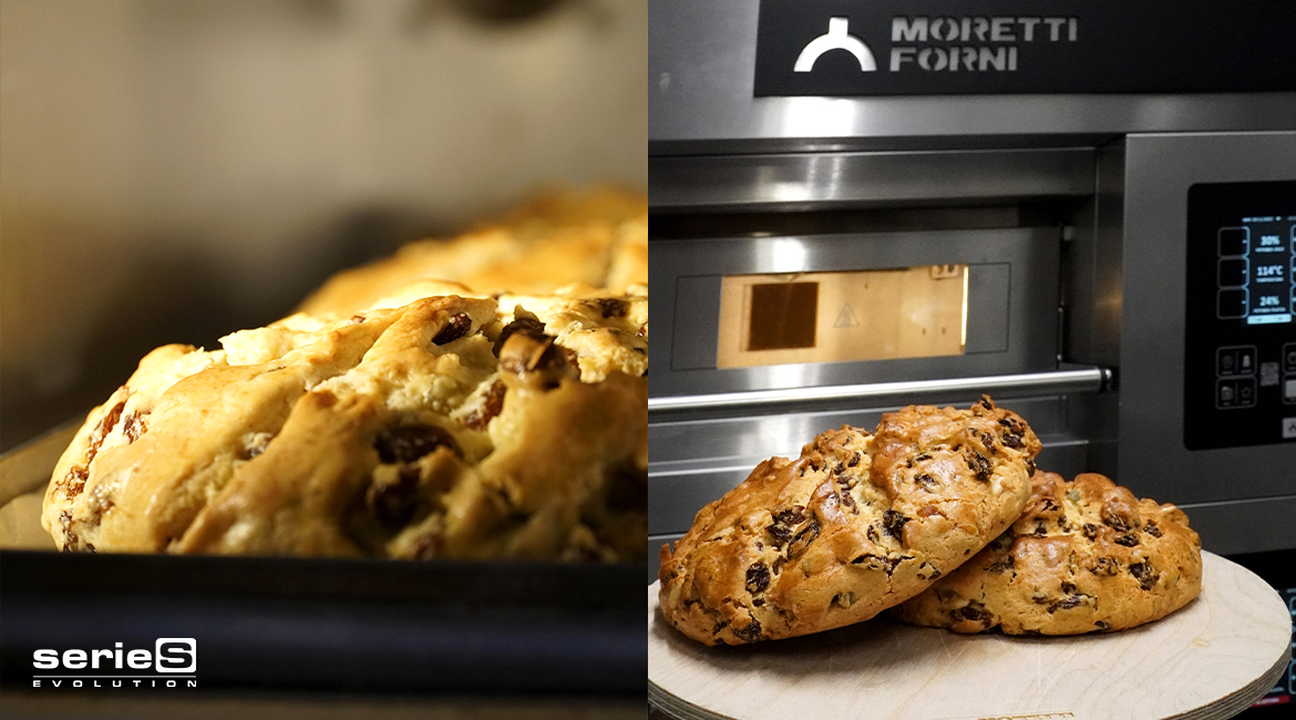 Dic72022RICETTENella ricetta per pandolce genovese, specialità ligure tipica del periodo natalizio, il calore di serieS Steambake sarà determinante sia per lo sviluppo perfetto del prodotto, ottenuto dalla spinta del piano refrattario, sia per mantenere il giusto grado di umidità interna, regolato dall’utilizzo della valvola scarico vapori. Scopriamo tutti i passaggi: Pandolce ingredienti (per c.a. 24 pandolci da 650 g) Burro a 22-23 °C 1.750 g Zucchero semolato 1.600 g Uova a temperatura ambiente 880 g Latte a temperatura ambiente 800 g Sale 20 g Vino Marsala 320 g Farina 0 o 00 W 180-200 5 Kg Baking 150 g Farcitura Uvetta 4 Kg Acqua per ammollo uvetta 350 g Arancia candita a cubetti 1.300 g Cedro candito a cubetti 650 g Pinoli leggermente tostati 400 g Semi di anice 20 g Calore: serieS Steambake – Programma di cottura in 3 fasi Fase 1 – 10 minuti – 175 °C – 40% cielo 30% platea – valvola aperta Fase 2 – 20 minuti – 170 °C – 30% cielo 25% platea – valvola chiusa Fase 3 – 20 minuti – 170 °C – 25% cielo, 20% platea – valvola aperta Come fare il pandolce genovese Impostare serieS per la cottura realizzando un programma a fasi come sopra descritto e far partire il preriscaldamento. In un recipiente ampio setacciare farina e baking e tenere da parte. In planetaria con foglia montare il burro con lo zucchero per 4-5 minuti finché non risulterà spumoso. A velocità media aggiungere a filo le uova, quindi il latte. Incorporare e poi aggiungere metà della farina setacciata con il baking. Far girare piano fino ad incorporare e rendere omogeneo, poi unire il marsala e far assorbire. Unire tutta la farcitura, far girare 10 secondi, unire il resto della farina con il baking, far girare fino ad amalgamare il tutto (per c.a. 20-30 secondi). Trasferire l’impasto sul piano di lavoro e, aiutandosi con poca farina, spezzare in porzioni da 700 g. Arrotondare leggermente, premere per ottenere dei dischi alti 6-8 cm e porli su teglia rivestita di carta forno. Lucidare con uovo battuto con un po’ di latte, quindi con un tarocco decorare la superficie facendo dei tagli poco profondi. Infornare e far partire il programma gestendo manualmente l’apertura della valvola. Allo scadere del tempo sfornare e far raffreddare. Leggi ancheBomboloncini al forno con cioccolato e lamponi7 Luglio 2025Colomba tradizionale18 Aprile 2025Bagels6 Settembre 2024Éclair Mojito10 Agosto 2024Pizza Peach Summer5 Luglio 2024Pane al cioccolato con lievito madre14 Giugno 2024