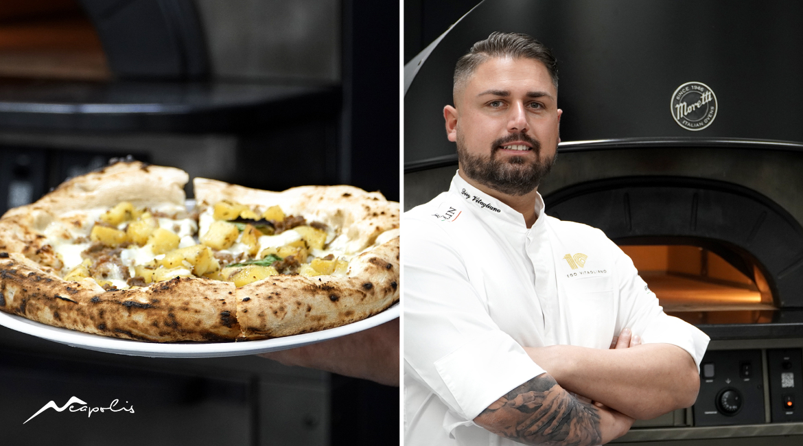 Gen282022RICETTEÈ il Maradona della pizza con la sua “10” a Pozzuoli, avanguardia della pizza napoletana contemporanea: cornicione pronunciato ed estrema digeribilità, farciture con prodotti del proprio territorio sono le caratteristiche che Diego Vitagliano associa alla cottura perfetta di Neapolis, il forno che produce il calore ideale per questa specifica tipologia di pizza, ben sviluppata e con la giusta umidità interna. Vincitore di molti riconoscimenti, tra cui i “3 Spicchi” Gambero Rosso e pizzaiolo dell’anno per 50 Top Pizza Italia 2021, Vitagliano ha partecipato allo sviluppo del forno elettrico a bocca aperta di Moretti Forni, utilizzato anche nella realizzazione della sua “Patasiccia”. Scopriamo tutti i passaggi: Pizza napoletana contemporanea ricetta INGREDIENTI Per il prefermento: Farina W280 3000 g Lievito compresso 10 g Acqua 1,5 l Per l’impasto: Farina 7.000 g Prefermento 4.500 g Sale 200 g Olio E.V.O. 80 g Lievito compresso 10 g Acqua 6 l Calore: Neapolis, Modalità Dual-Power 510 °C, 9 cielo / 2 platea – Tempo cottura 1 minuto Per la farcitura: Salsiccia di suino dei Campi Flegrei (secca) Patate al forno Provola di Agerola Basilico riccio napoletano Olio extra vergine di oliva Grana padano PROCEDIMENTO Prefermento Preparare un prefermento impastando 3000 g di farina W280, 10 g di lievito compresso e 1,5 l di acqua. Impastare tutti gli ingredienti e lasciare fermentare per 24 h a 16 °C. Il giorno seguente inserire il prefermento al 30% nell’impasto per un totale di 10 kg. Impasto Versare l’acqua. Spezzettare il prefermento e aggiungere il lievito. Inserire tutta la farina. Impastare in prima velocità per 14 minuti, negli ultimi 4 minuti inserire il sale per poi continuare altri 2 minuti in seconda velocità. Durata totale impasto 16 minuti. Alzare l’impasto e fare lo staglio. Formare i panetti e mettere in frigorifero a 4 °C per altre 10 h. Tre ore prima del servizio tirare fuori gli impasti dal frigo e far arrivare i panetti a 20 °C. Condire e infornare in Neapolis a 510 °C, 9 cielo / 2 platea per 1 minuto. Leggi ancheBomboloncini al forno con cioccolato e lamponi7 Luglio 2025Colomba tradizionale18 Aprile 2025Bagels6 Settembre 2024Éclair Mojito10 Agosto 2024Pizza Peach Summer5 Luglio 2024Pane al cioccolato con lievito madre14 Giugno 2024