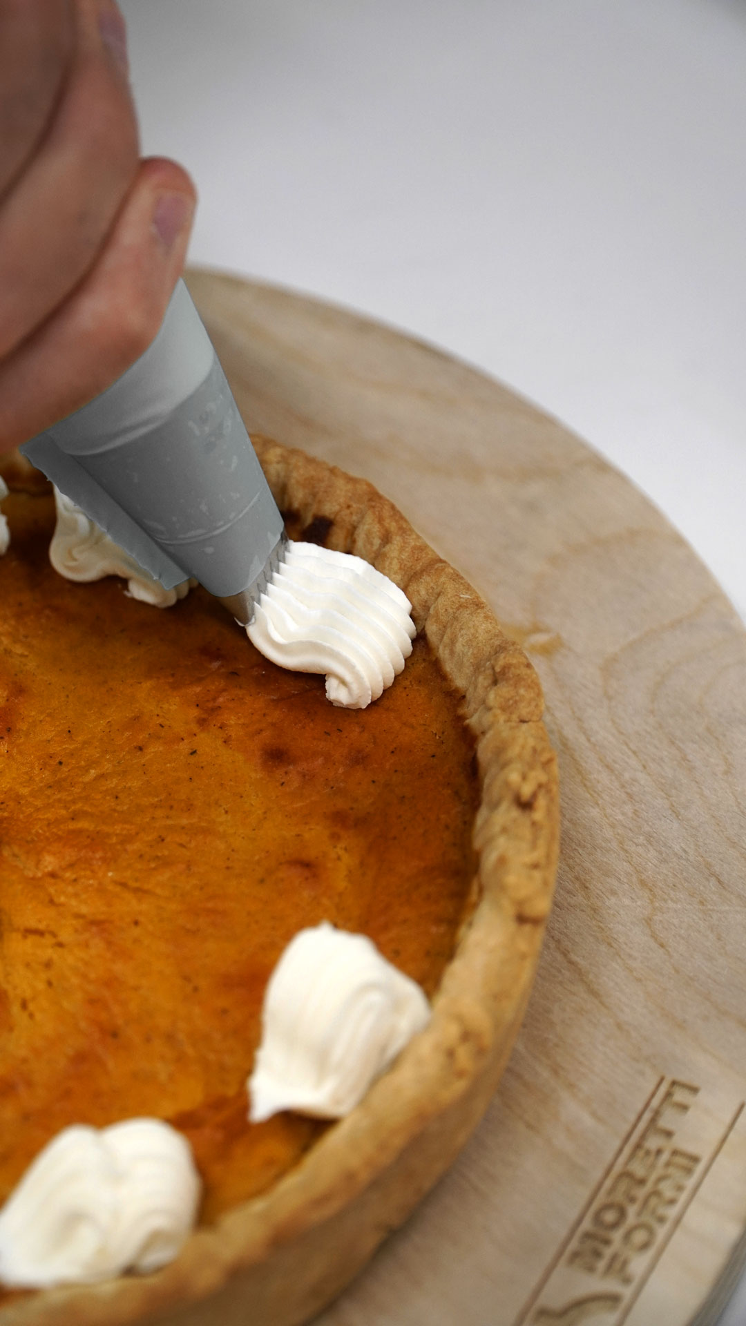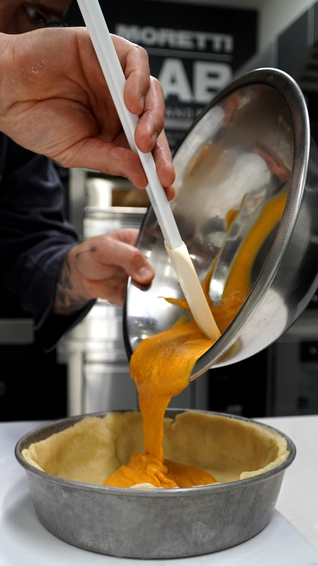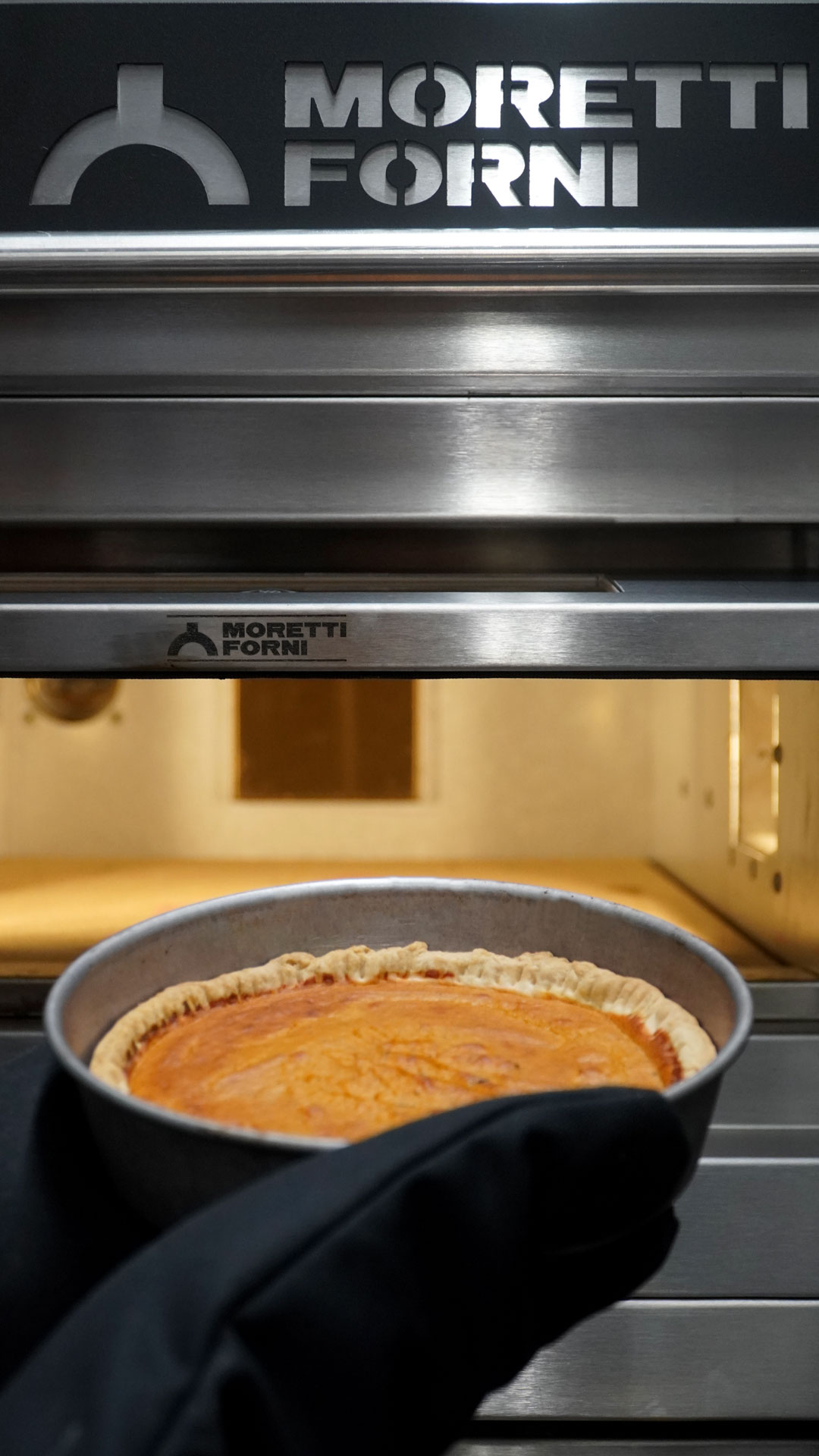 Ott272022RICETTELa pumpkin pie, letteralmente torta di zucca, affonda le radici nelle primissime celebrazioni del giorno del Ringraziamento negli Stati Uniti, nella seconda metà del 1600. Tuttora è la protagonista delle tavole americane nel Thanksgiving Day, ma questa crostata di zucca dal guscio friabile di pasta brisée con il cuore morbido e cremoso viene preparata anche ad Halloween. In questa ricetta, il calore di serieS è indispensabile per riprodurne le particolari consistenze: il perfetto bilanciamento delle percentuali di cielo e platea, insieme all’apertura della valvola scarico vapori a metà cottura, assicureranno la giusta croccantezza e caramellizzazione della parte esterna, mantenendo il centro della torta liscio e vellutato, come vuole la ricetta originale della torta di zucca per il Ringraziamento. Vediamo tutti i passaggi: Ricetta pumpkin pie PUMPKIN PIE INGREDIENTI – Per una tortiera Ø 22 cm circa Per la pasta brisée Farina 00 215 g Burro freddo 75 g Zucchero 1 cucchiaio raso Acqua ghiacciata 50 ml Sale 1 pizzico Per la crema di zucca Purea di zucca 260 g cotta (circa 1 kg cruda) Zucchero di canna 1 cucchiaio Panna liquida 50 g Latte 90 g Uovo (1 tuorlo) Miele 1 cucchiaio Spezie (1 pizzico di cannella in polvere, 1 di noce moscata, 1 di sale) Calore Per la zucca serieS Multibake 200 °C – 50% cielo, 60% platea – Tempo di cottura 20-30 minuti Per la pumpkin pie serieS Multibake 180 °C – 50% cielo, 60% platea – Tempo di cottura 40 minuti Come fare torta di zucca PROCEDIMENTO Predisporre serieS per la cottura: 200 °C, 60% platea e 50% cielo, lasciandolo salire in temperatura. Nel frattempo, realizzare l’impasto per la base della pumpkin pie mescolando insieme farina, burro freddo a tocchetti, zucchero e sale. Sbriciolare tutto insieme fino ad ottenere un effetto sabbiato. Aggiungere l’acqua ghiacciata e compattare fino ad ottenere una palla. Riporre a riposare in frigo per 1 ora. A questo punto cuocere la zucca in serieS secondo le impostazioni al punto 1, per 20 – 30 minuti e comunque finché non risulti morbida. Sfornare e lasciar raffreddare a temperatura ambiente. Una volta raffreddata, inserirla in un mixer insieme a tutti gli altri ingredienti della crema, tranne il latte. Frullare finemente più volte, fino ad ottenere una purea molto liscia. Una volta che il composto risulterà omogeneo, privo di grumi e morbido, aggiungere il latte a filo un po’ per volta, regolandone la consistenza. Assemblare la pumpkin pie stendendo la pasta brisée a circa 4 – 5 mm, aiutandosi con farina e mattarello. Foderare uno stampo imburrato e bucherellare il fondo con una forchetta. Versare la crema e porre in frigo a riposare per 30 minuti. Nel frattempo abbassare serieS a 180 °C, lasciando rispettivamente cielo e platea al 50% e al 60% platea, Timer1 a 40 minuti. Infornare e premere start. A metà cottura, aprire la valvola scarico vapori, lasciandola aperta fino alla fine per far di sì che la pie si asciughi al punto giusto. Allo scadere del tempo sfornare e lasciar raffreddare. Servire fredda. Torta di zucca al forno come conservarla Una volta fredda, è possibile conservare la pumpkin pie in frigorifero fino a un massimo di 2 giorni. Leggi ancheBomboloncini al forno con cioccolato e lamponi7 Luglio 2025Colomba tradizionale18 Aprile 2025Bagels6 Settembre 2024Éclair Mojito10 Agosto 2024Pizza Peach Summer5 Luglio 2024Pane al cioccolato con lievito madre14 Giugno 2024
